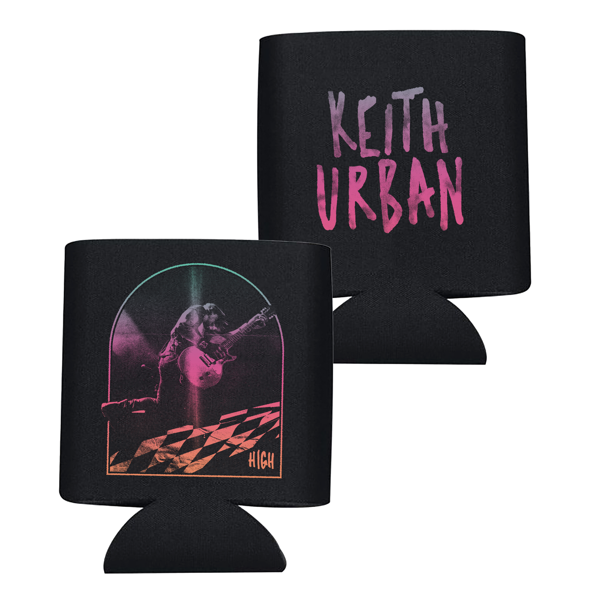 Black coolie featuring "KEITH URBAN" on one side, and a live performance photo and "HIGH" on the other.