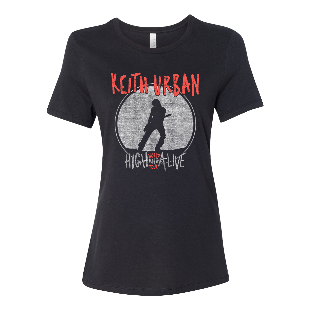 - Vintage black, ladies tee featuring the HIGH AND ALIVE WORLD TOUR logo